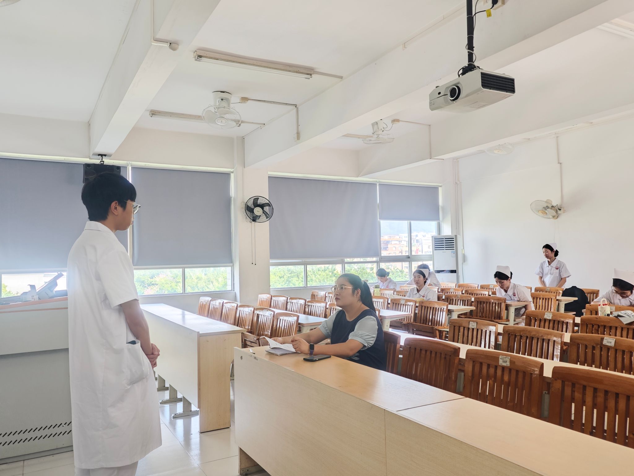 10月17日下午,2023级护理学A班开展模拟面试活动,采用“五人一组”的小组面试形式,由班主任曹小兰与辅导员黄海萍共同担任评委。活动伊始,班主任曹老师强调“衣装整洁”与“礼仪规范”的重要性,指出这是护理职业素养的重要体现。她特别提醒,部分知名医院如中大附一、附二在实习选拔中会增设笔试或实操考核,员工需注重护理流程的完整性,牢记核对床头卡、医嘱等关键细节。面试过程中,评委们不仅关注员工的专业知识掌握情况,更注重其表达自信与沟通能力。在点评环节,老师们针对简历制作与自我介绍内容提出具体建议,强调要突出个人亮点,避免“流水账”式表述,提升整体竞争力。