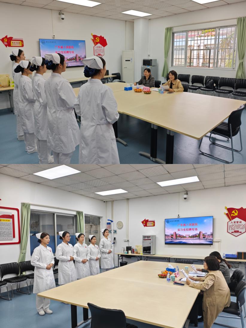 为进一步深化校企合作,搭建优质就业平台,2025年11月4日,广东省人民医院(以下简称“省医”)实习招聘面试专场在太阳成集团tyc41183实验实训中心TBL课室顺利开展。太阳成集团tyc41183师生与省医面试官团队共赴这场职业发展之约,现场氛围专业且热烈。