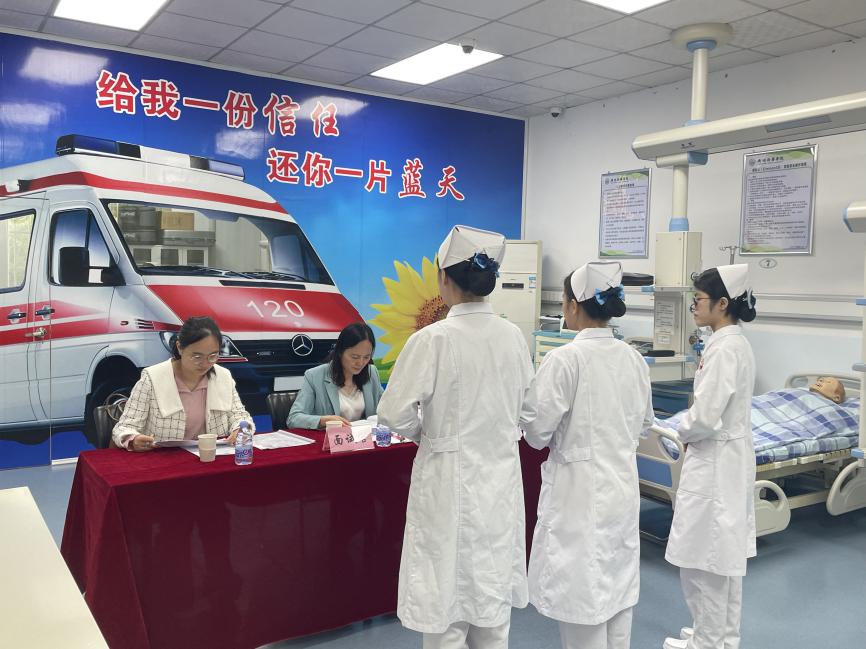 交谈结束后,面试环节随即展开。同学们以三人一组依次进入考场,从个人专业学习经历和技能掌握情况的自我介绍,到对护理伦理、临床应急处理等专业问题的回答,再到对未来职业规划的阐述,同学们表现得从容不迫、条理分明,不仅展现了扎实的专业能力,更传递出对护理事业的深厚热爱与坚定追求。