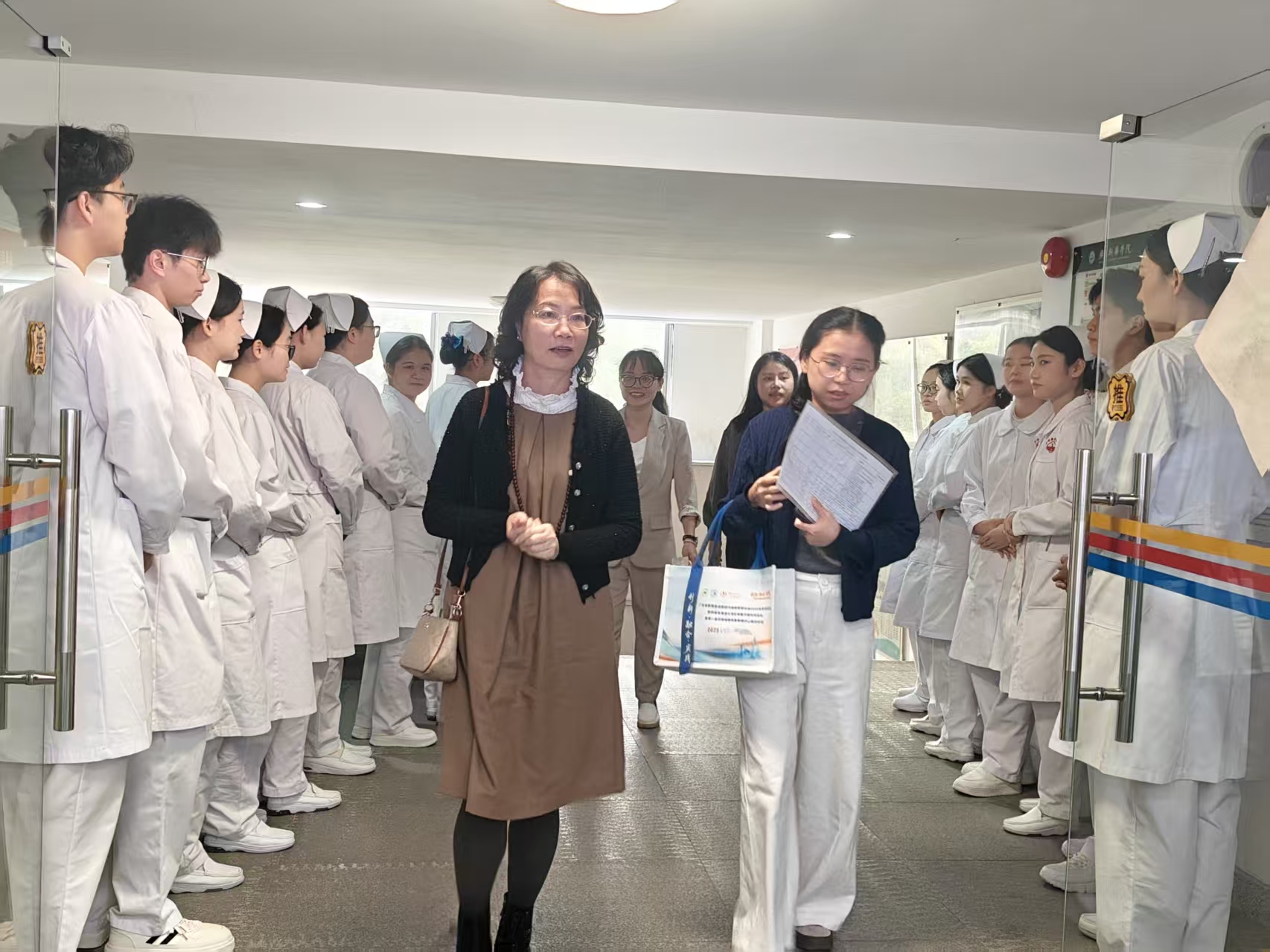 图1 师生们热情迎接番禺中心医院刘净老师、黄小琴老师
