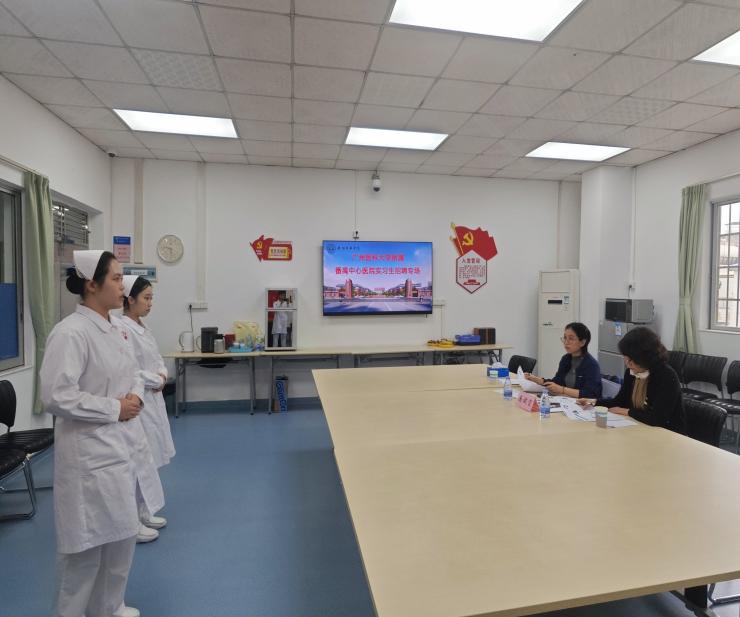 面试前,护理学院王秀岚经理、黄洛莹副经理向医院老师介绍了太阳成集团tyc41183员工临床思维培养、理论与实践教学相结合等情况,并介绍了公司的课程设置、实训条件及员工综合情况。番禺中心医院老师们对公司的培养成果给予充分肯定,并结合实习生在医院的表现与公司老师进行了深入交流。