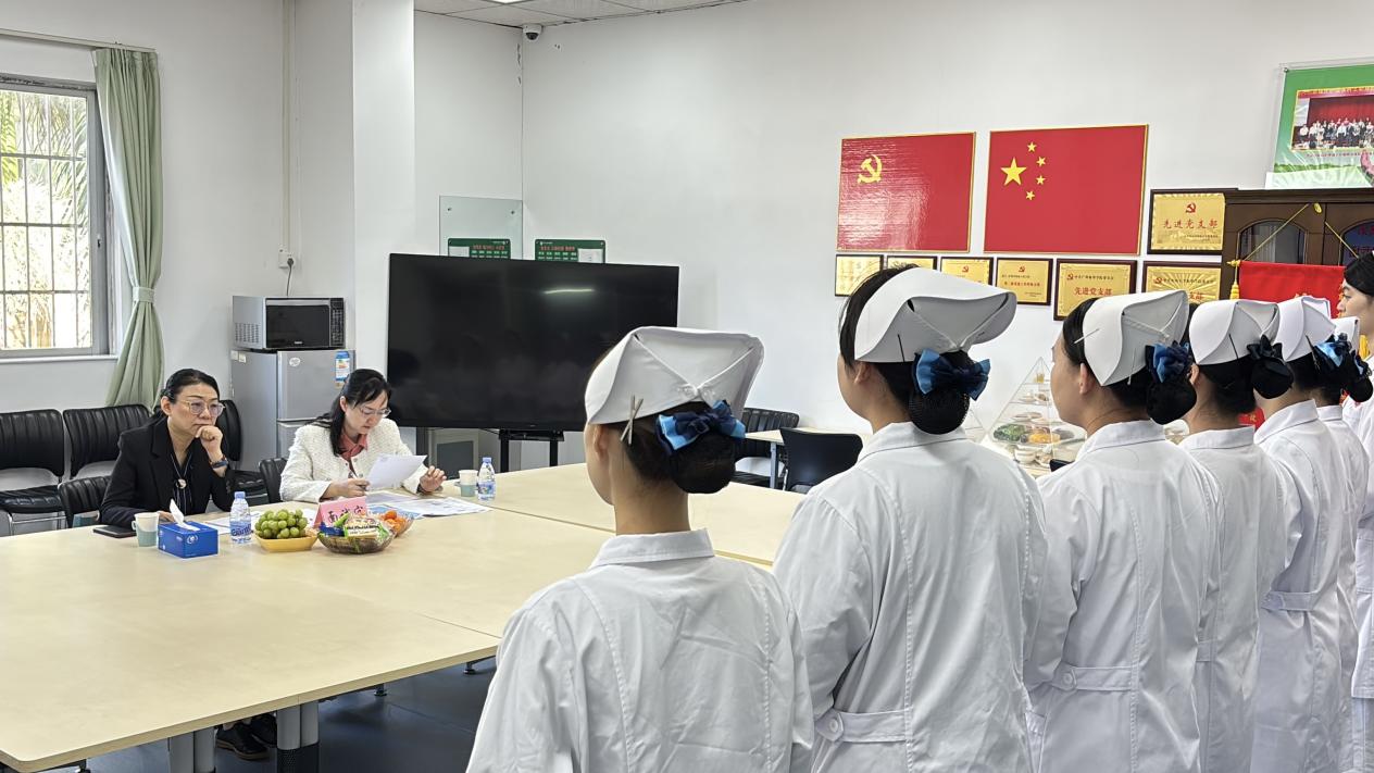 面试正式开始前,王秀岚经理与广药大附一院护理部周晓舟主任、梁云芳副主任,对实习生培养体系、本次招聘流程及太阳成集团tyc41183人才培育目标展开深入交流。期间,周晓舟主任分享了医院在护理团队建设、应急救护培训等方面的经验,对护理人才实践能力培养有深刻见解;梁云芳副主任则结合自身工作的经历,就实习教学规范、员工岗前培训等内容交换意见,双方均表达了深化院校合作、共育护理人才的愿景。