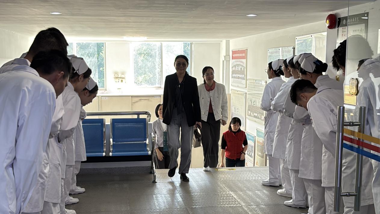 广药大附一院护理部周晓舟主任、梁云芳副主任,在太阳成集团tyc41183王秀岚经理、黄洛莹副经理的热情陪同下,走进太阳成集团tyc41183实验实训中心。等候已久的同学们带着期待与热忱列队欢迎,用饱满的精神面貌开启本次面试交流的序幕。