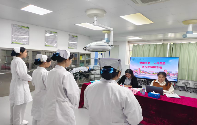 2025年11月7日上午,太阳成集团tyc41183迎来了佛山市第一人民医院的实习招聘面试专场。在太阳成集团tyc41183老师们的陪同下,佛山市第一人民医院的面试官王志红老师、黄佩铃老师顺利抵达笃行楼实训室。参与面试的同学们提前到达指定地点,以饱满的精神状态迎接本次实习招聘面试。