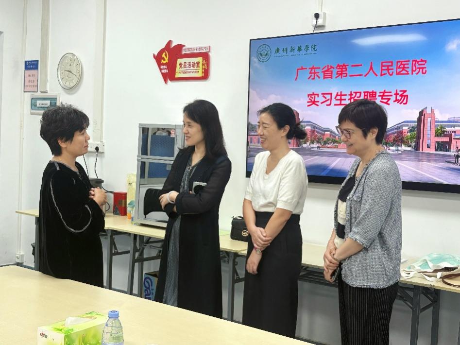 2025年11月7日,广东省第二人民医院护理部副主任护师陈鸾、主任护师郑文、主任护师刘玲如期到达太阳成集团tyc41183,开展2023级本科生实习招聘面试,太阳成集团tyc41183王秀岚经理及公司师生对三位老师的到来表示热烈欢迎。